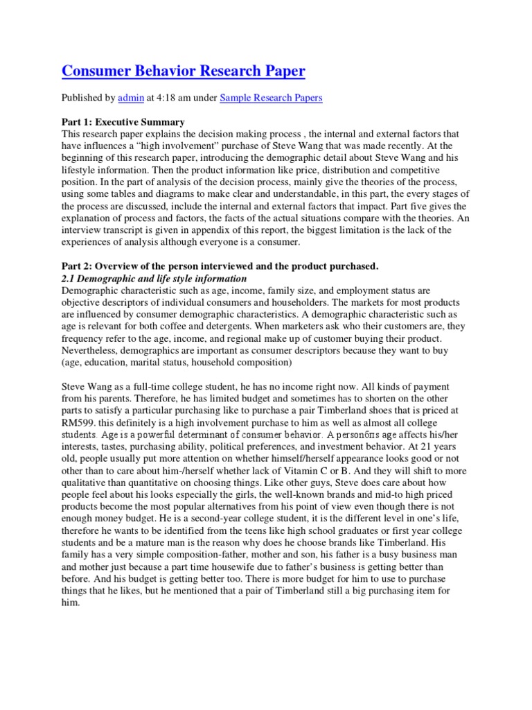 · The purpose of this literature review is to systematically review consumer behavior research over a year period in five major journals in the field. Such an examination of diverse research in this discipline allows for identification of shifts and changes in a longitudinal blogger.com: Kaveh Peighambari, Setayesh Sattari, Arash Kordestani, Pejvak Oghazi Consumer behavior research focuses on studying consumer actions (in the moment) and getting to know the underlying motives. This type of research benefits from systematic observation and a structural analysis providing key insights in order to successfully predict consumer preference and consumer buying behavior Market research is critical in accomplishing the following tasks: Building a picture of consumer behavior. Establishing how well a product or service meets the needs of the market. Evaluating the size of the market for a particular product or service.
