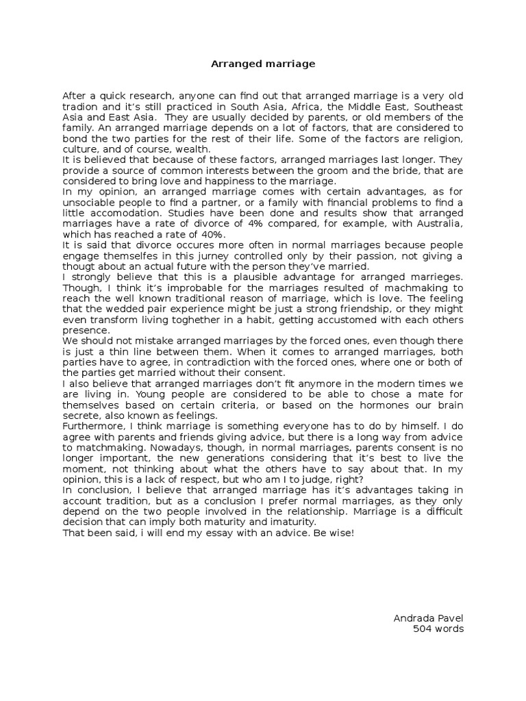 The current essay on love marriage and arranged marriage will examine the ways in which individuals prefer choosing their partners for getting married. It is a fact that every person looks for an ideal match, but there is evidently a difference in terms of There are two types marriages, i.e. Love Marriage vs Arranged Marriage Essay, marriage is an important decision in life, which two people decide together. Apart from this, in India it is also said that marriage is not a combination of two people but two blogger.comted Reading Time: 2 mins · Love marriage is a term used to describe the act of marrying someone without having met them before. Arranged marriage, on the other hand, is when you are introduced to your partner by your parents or guardians before you get married. Love marriages are not always the best choice